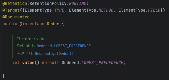 @Order ์ ๊ฒฝ์ฐ ๊ธฐ๋ณธ๊ฐ์ LOWEST_PRECEDENCE์ด๋ค.