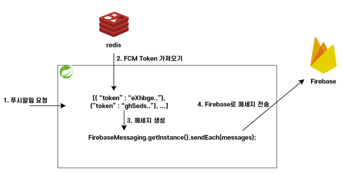 ๊ธฐ์กด์๋ ํธ์ ์๋ฆผ ์์ฒญ์ ๋ฐ๋ผ์ ์๋ฒ ๋ด์์ ๋ฉ์ธ์ง๋ฅผ ์์ฑํ๊ณ Firebase๋ก ๋ฉ์ธ์ง๋ฅผ ์ ์กํ๋ค.