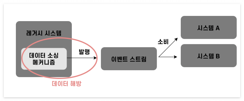 ๋ฐ์ดํฐํด๋ฐฉ(data liberation)์ ๊ต์ฐจ ๋๋ฉ์ธ ๋ฐ์ดํฐ ์ธํธ(cross-domain data set)๋ฅผ ์๋ณํ์ฌ ๊ฐ ์ด๋ฒคํธ ์คํธ๋ฆผ์ ๋ฐํํ๋ ์ด๋ฒคํธ ๊ธฐ๋ฐ ์ํคํ ์ฒ์ ๋ง์ด๊ทธ๋ ์ด์ ์ ๋ต์ด๋ค.